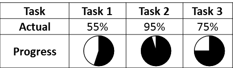 Progress Pies can be used to report on the progress of a task or activity.