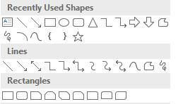 Add Shapes and Connectors: Displays the MS Office Autoshapes gallery. Right clicking on a shape and selecting “Lock Drawing Mode” will allow the User to draw multiple versions of the selected shape.